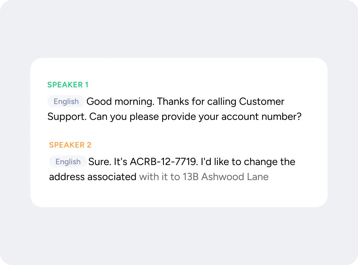 Get every word right across languages, accents, numbers, and domain-specific terms – even in fast, messy, multi-speaker conversations.